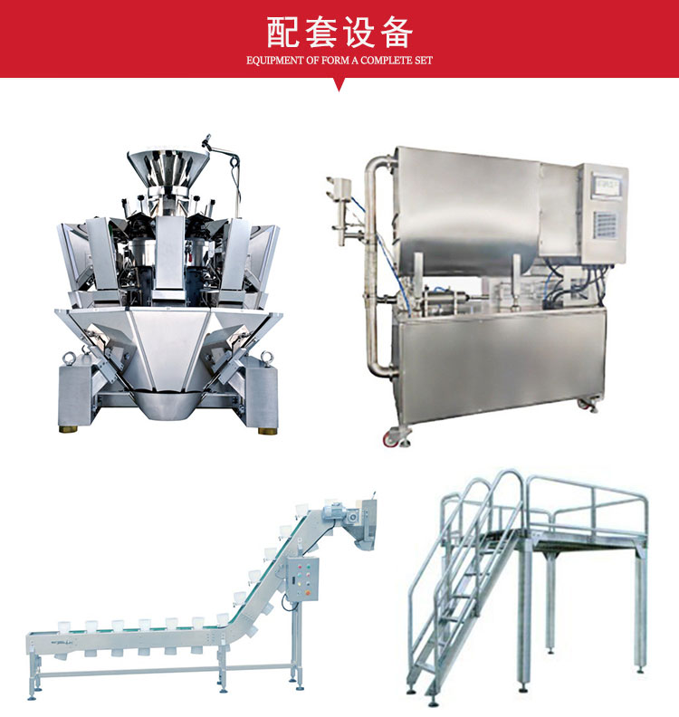 使用范围:大蒜头ã€ç‰›è‚‰ä¸¸ã€è‚‰ä¸¸ã€é…¸èœç‰é¢—粒状物料的真空包装。这套设备是由:真空包装机+工作平å°+æå‡æœº+液体çŒè£…机+多头组åˆç§¤ç»„åˆè€Œæˆã€‚