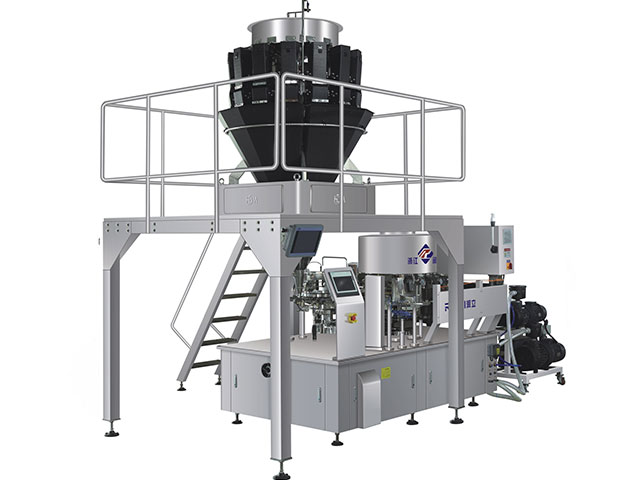 使用范围:大蒜头ã€ç‰›è‚‰ä¸¸ã€è‚‰ä¸¸ã€é…¸èœç‰é¢—粒状物料的真空包装。这套设备是由:真空包装机+工作平å°+æå‡æœº+液体çŒè£…机+多头组åˆç§¤ç»„åˆè€Œæˆã€‚