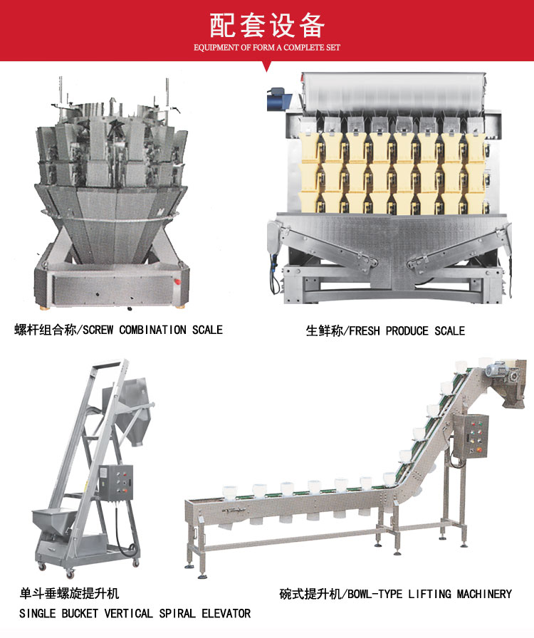 使用范围:花生ã€å°ç±³è¾£ã€é…¸è±†è§’ç‰é¢—ç²’çŠ¶ç‰©æ–™åŠ æ±¤æ±çš„真空包装。这套设备是由:真空包装机+工作平å°+æå‡æœº+多头组åˆç§¤+液体çŒè£…机组åˆè€Œæˆã€‚